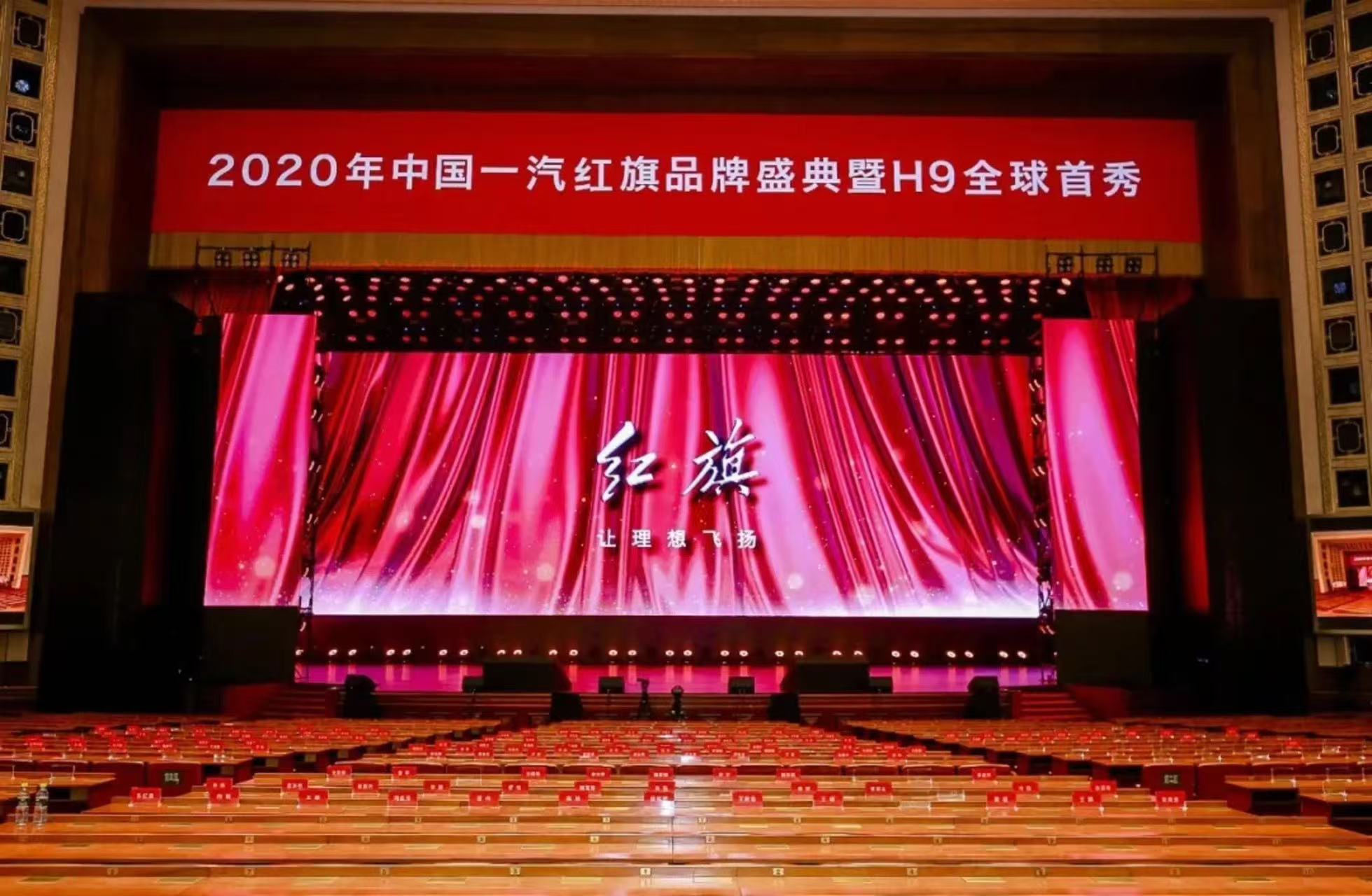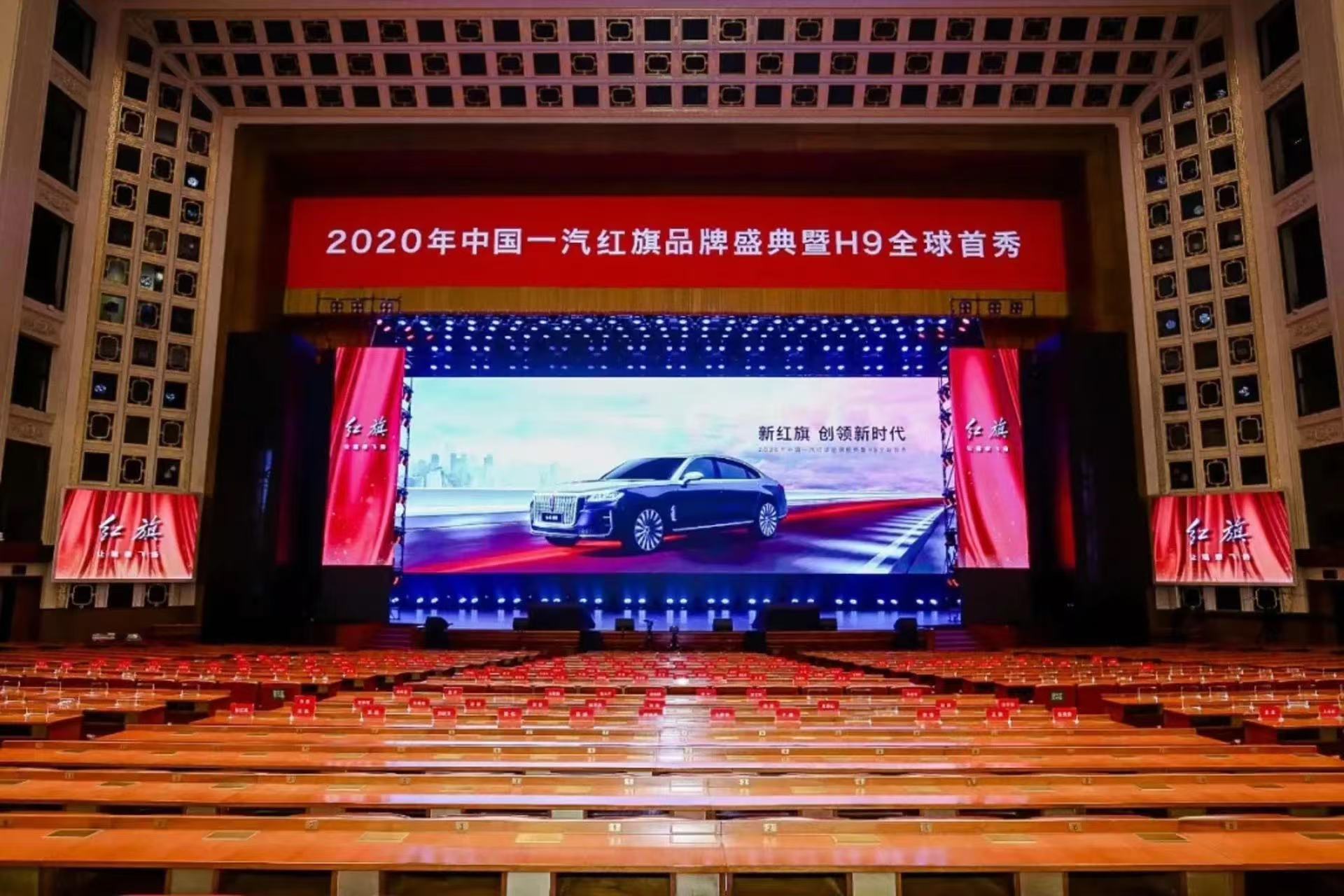 2020年1月8日,中国一汽红旗品牌盛典暨H9全球首秀在人民大会堂隆重举行。品牌盛典以“致敬新时代”、“礼赞新时代”、“创领新时代”三个篇章依次展开,展示新红旗自2018年品牌战略发布以来的辉煌成就,描绘未来发展蓝图。同时,新红旗H9开启全球首秀,树立当代中国汽车产业C+级车全新标杆。